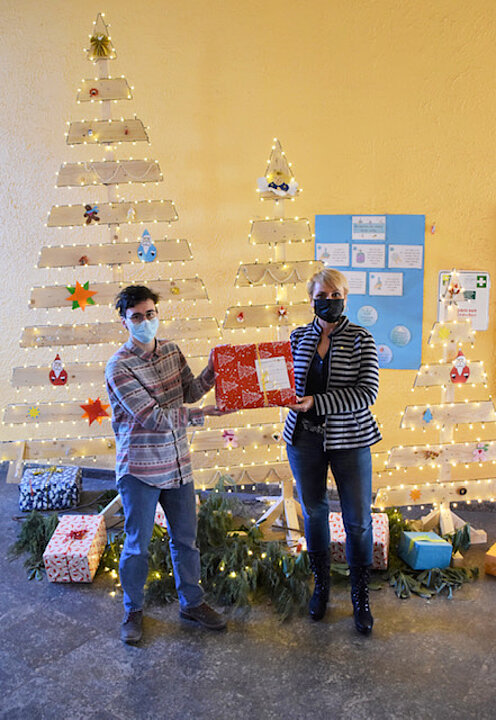 Unterstützt von Schulsozialarbeiterin Sal von Moers-Messmer werden die schön verpackten Geschenke den Kindern vor Ferienbeginn übergeben. So soll ihnen in den sorgenvollen, von der Pandemie bestimmten Zeiten eine Weihnachtsfreude bereitet werden.